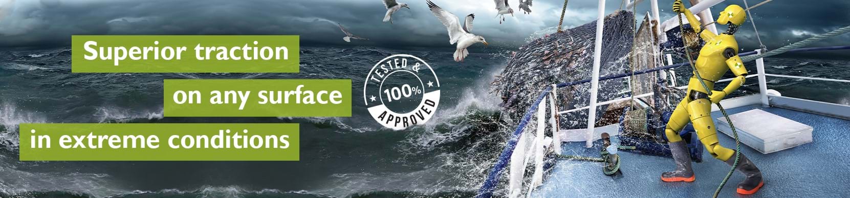 Designed for the people of the sea: side of the sole has a closed rim to avoid nets and ropes being caught in the tread of the boots.