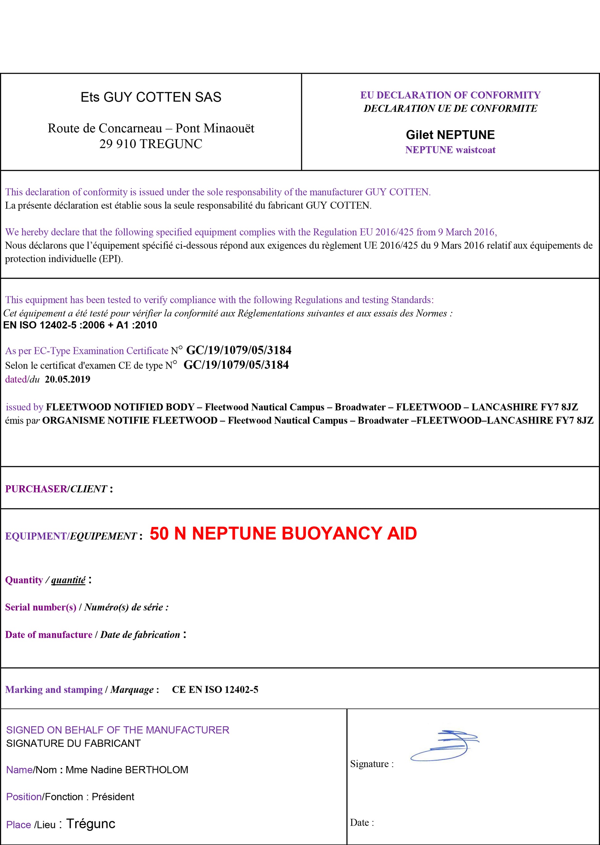 - The Neptune is compliant with current regulations in France concerning the obligatory wearing of a PFD at work (decree No. 2007-1227) and is approved for all professional activities.